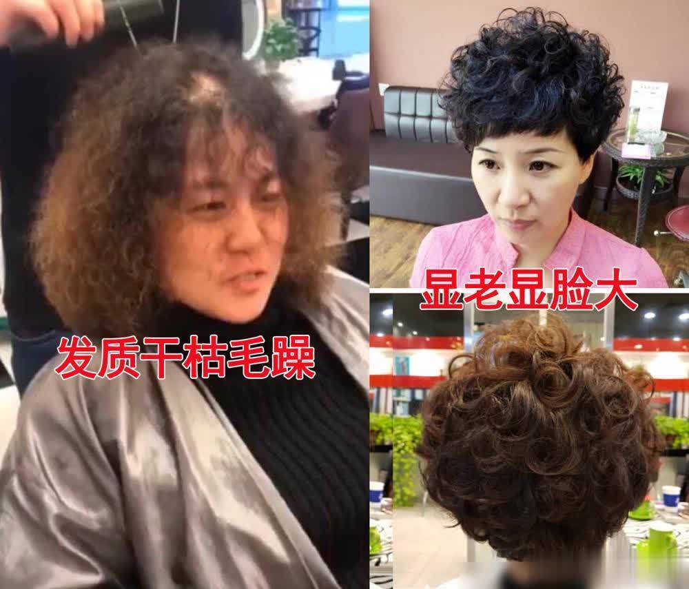 而且从肤色上来看,中年女性通常存在着部分白发,因此若选择泡面卷又染成黑色或咖啡色,会让整体效果显得比较混乱和凌乱。